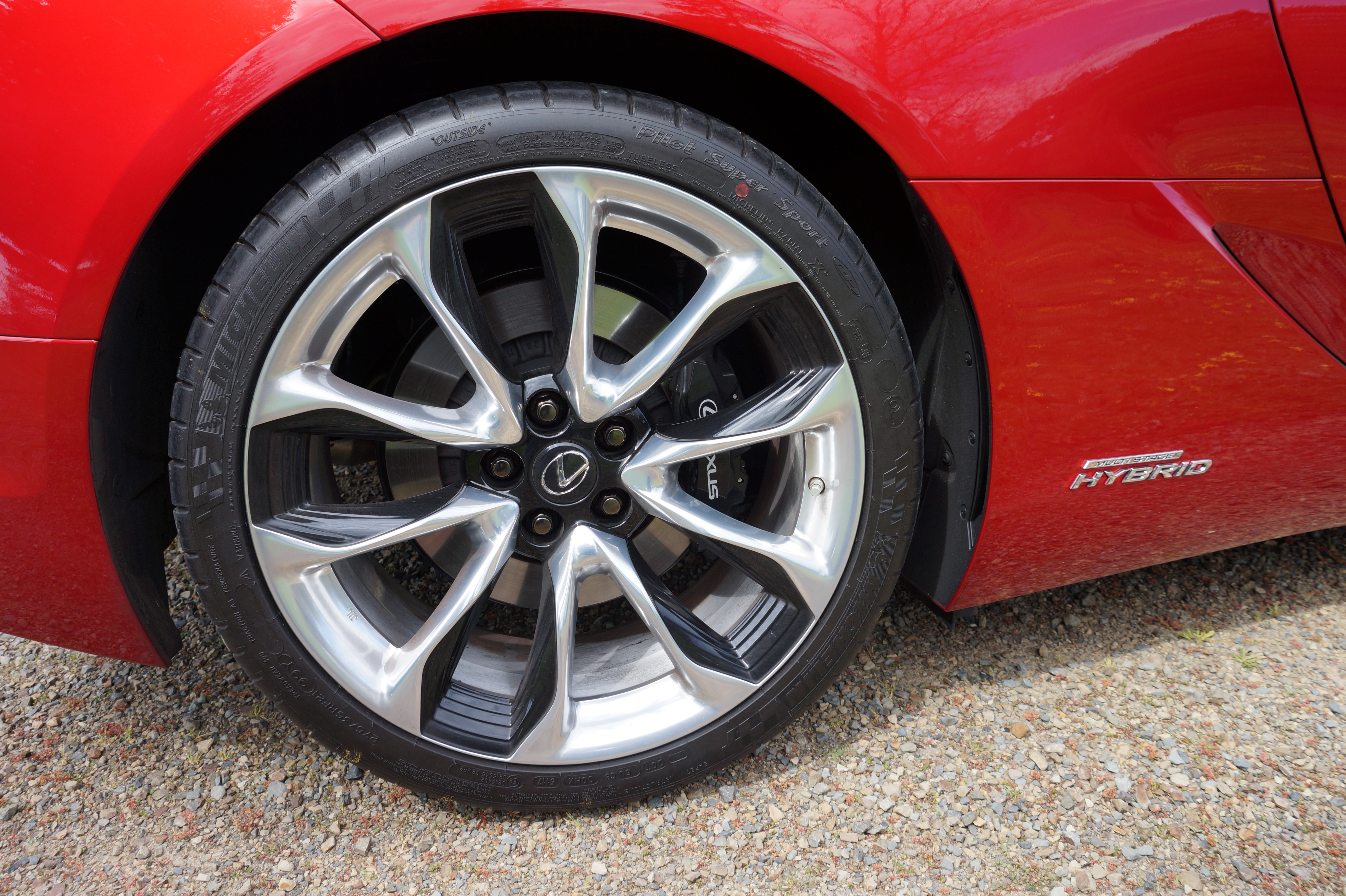 Stopping power is provided by 338mm diameter ventilated discs with six-piston calipers at the front and 307mm diameter ventilated discs with four-piston calipers at the rear. They do a great job of hauling up the heavy LC500h on the road.